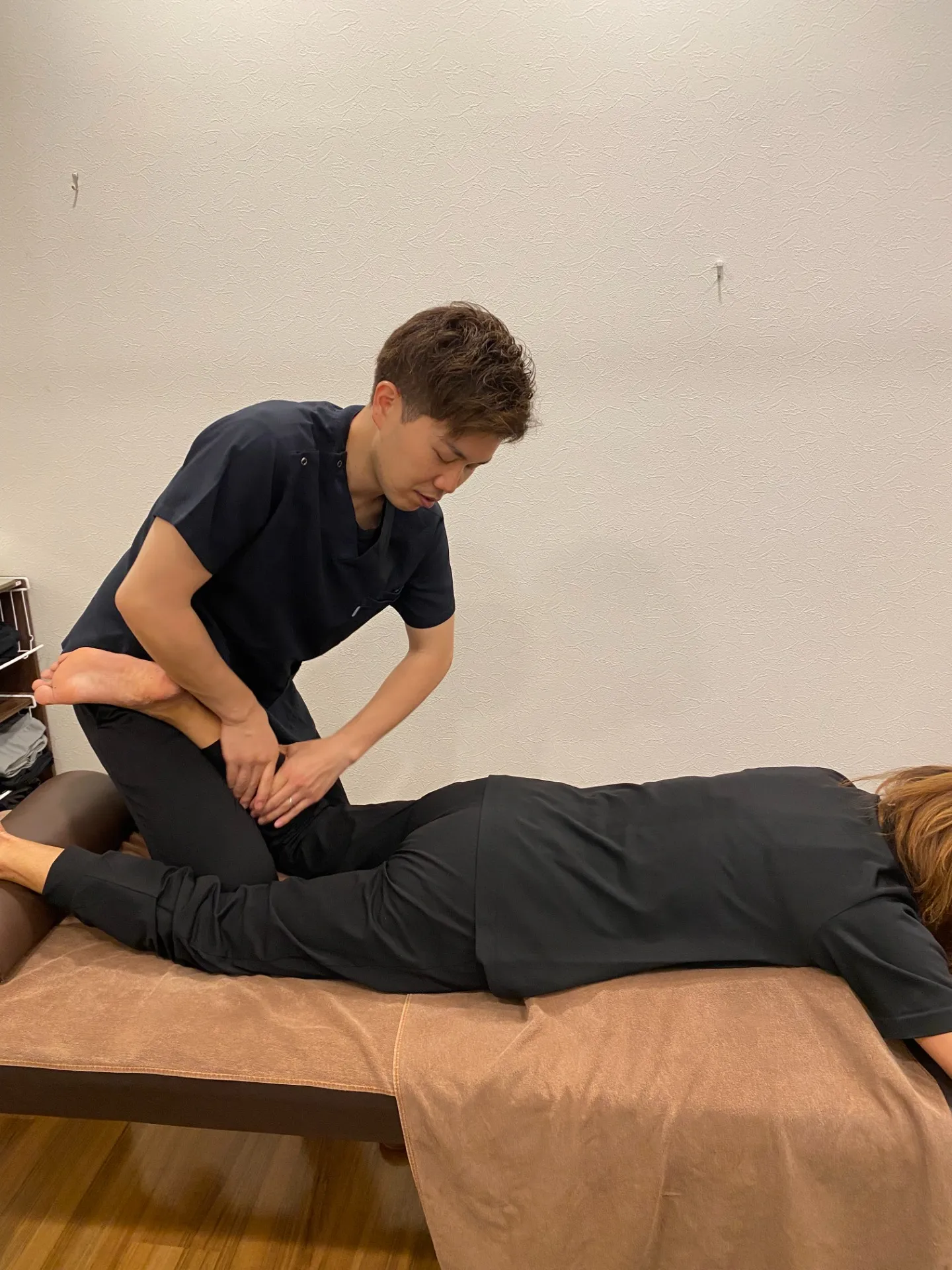 全身のバランス調整を重点的に行い、股関節の可動域を少しずつ広げるアプローチを取りました。
