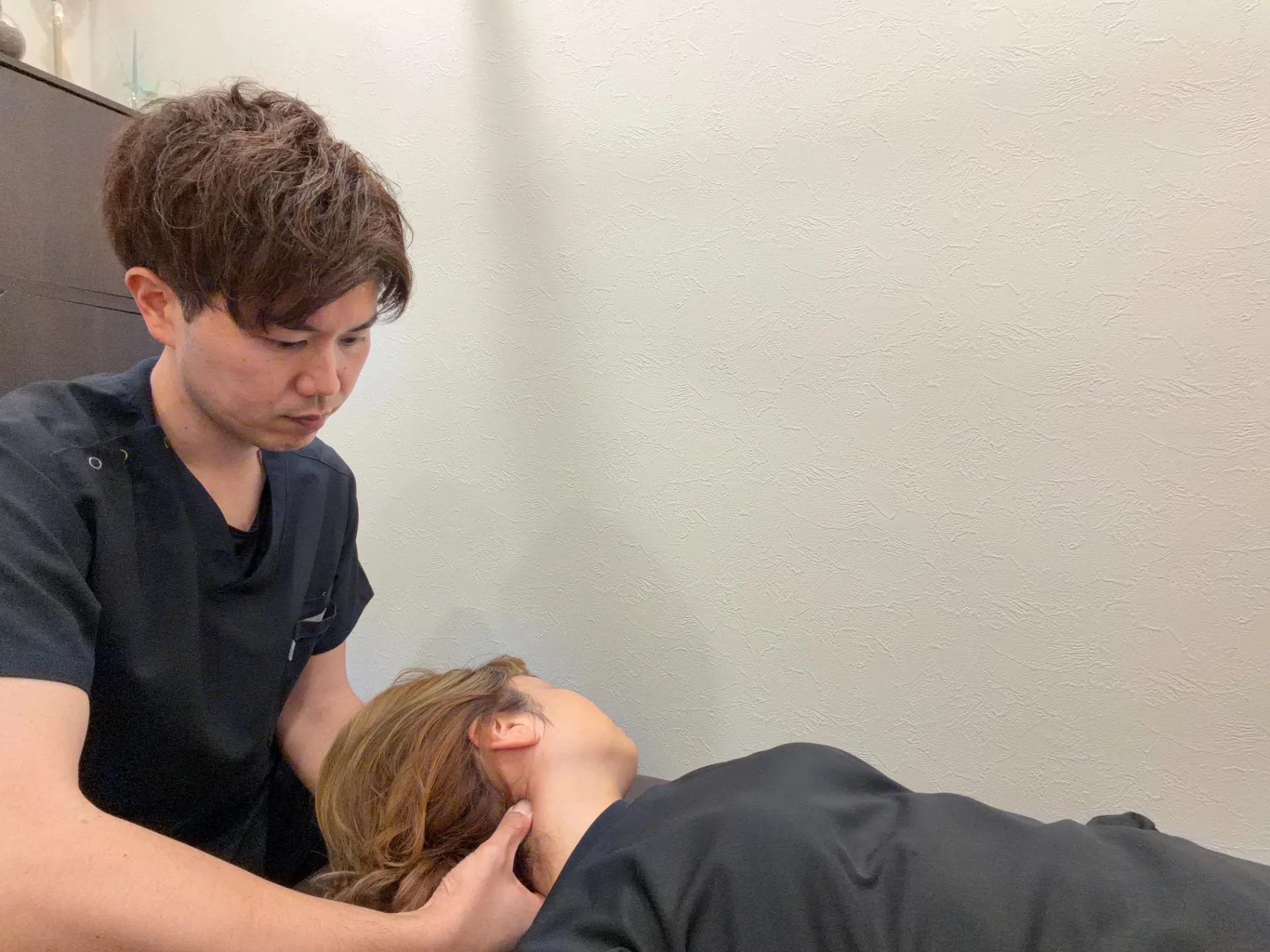 具体的には、肩甲骨まわりのこりや張り、首や背中の可動域のチェック、姿勢バランスの微調整など、一連の流れを丁寧に行ないます。また、痛みの強さに応じて力加減も調整しながら、無理のないアプローチを心がけます。